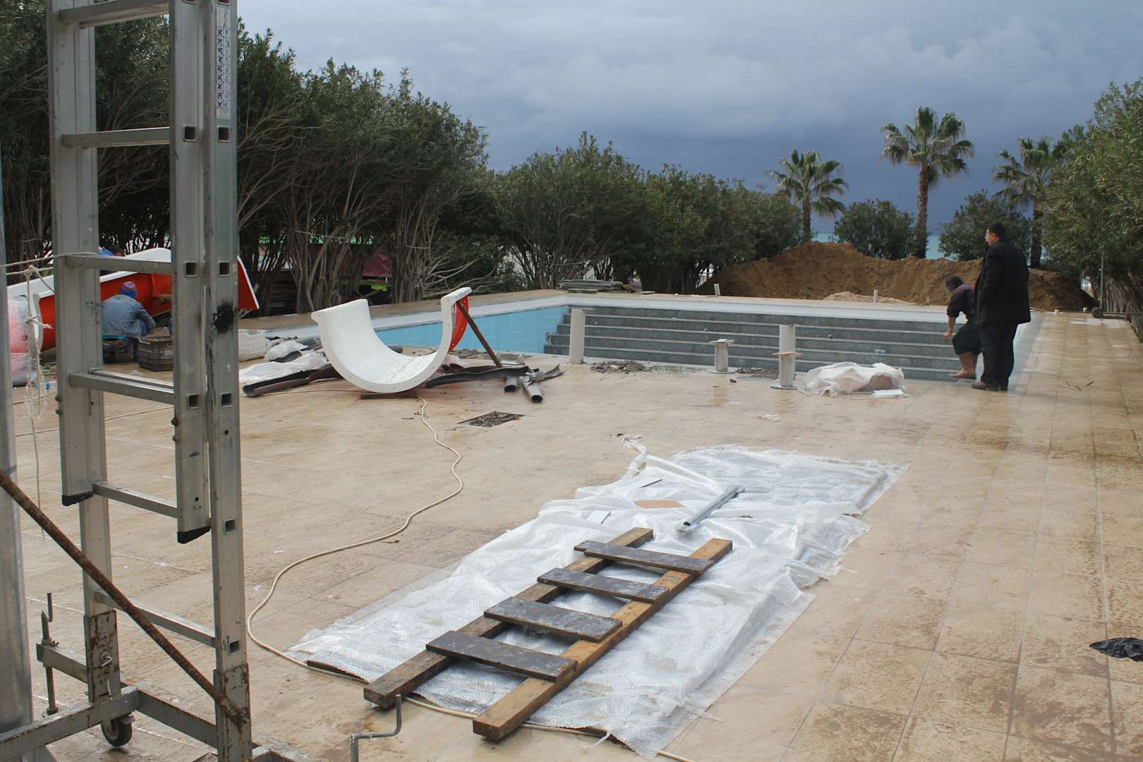 Eine neue Rutsche für Kinder wird gebaut.