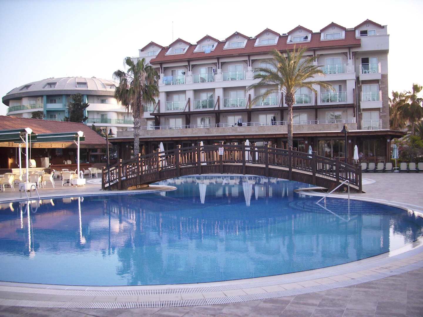Poolanlage mit Hotelaußenansicht