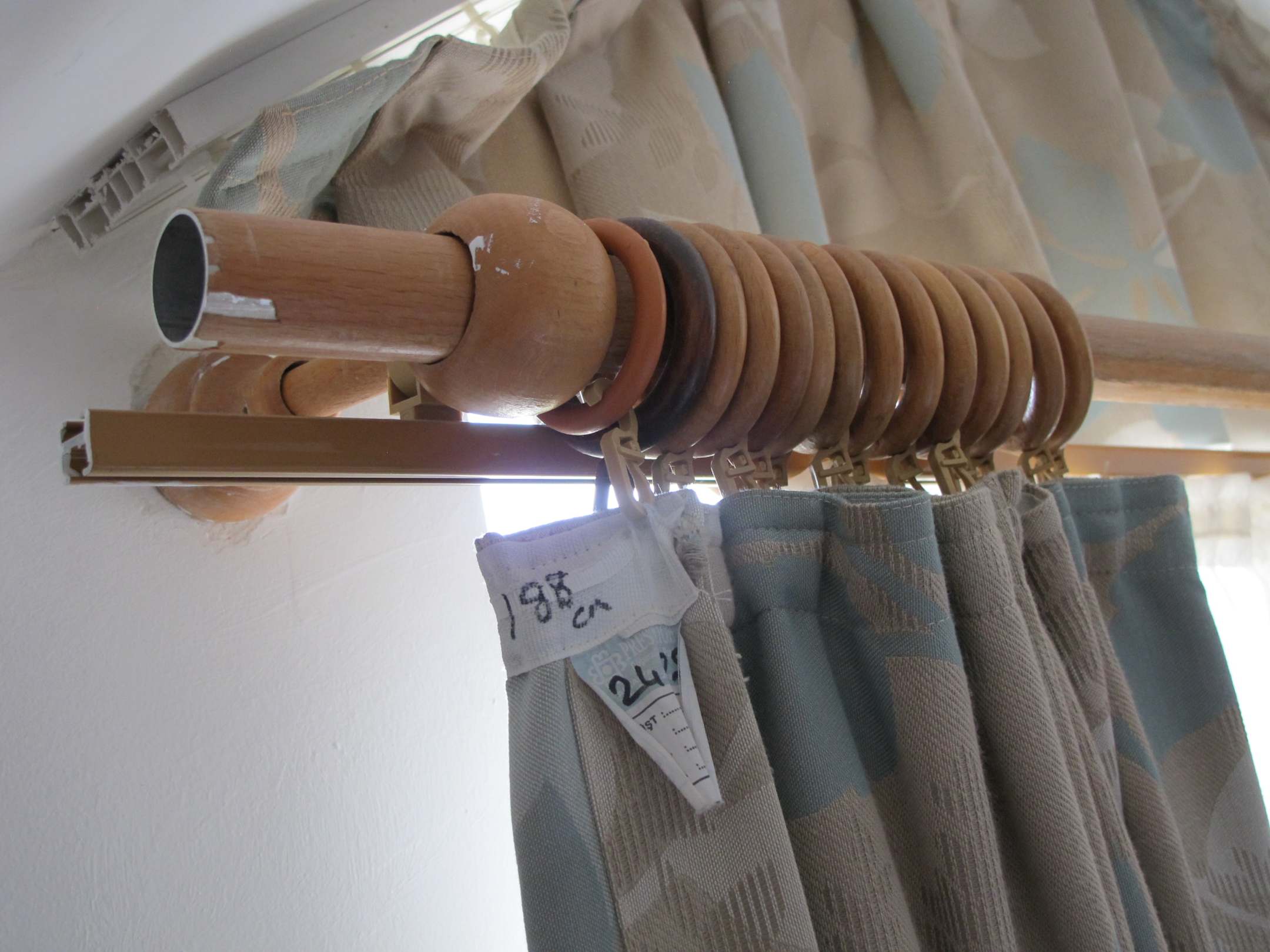Gardinenanlage mit unterschiedlichen Ringen, fehlenden Endstück