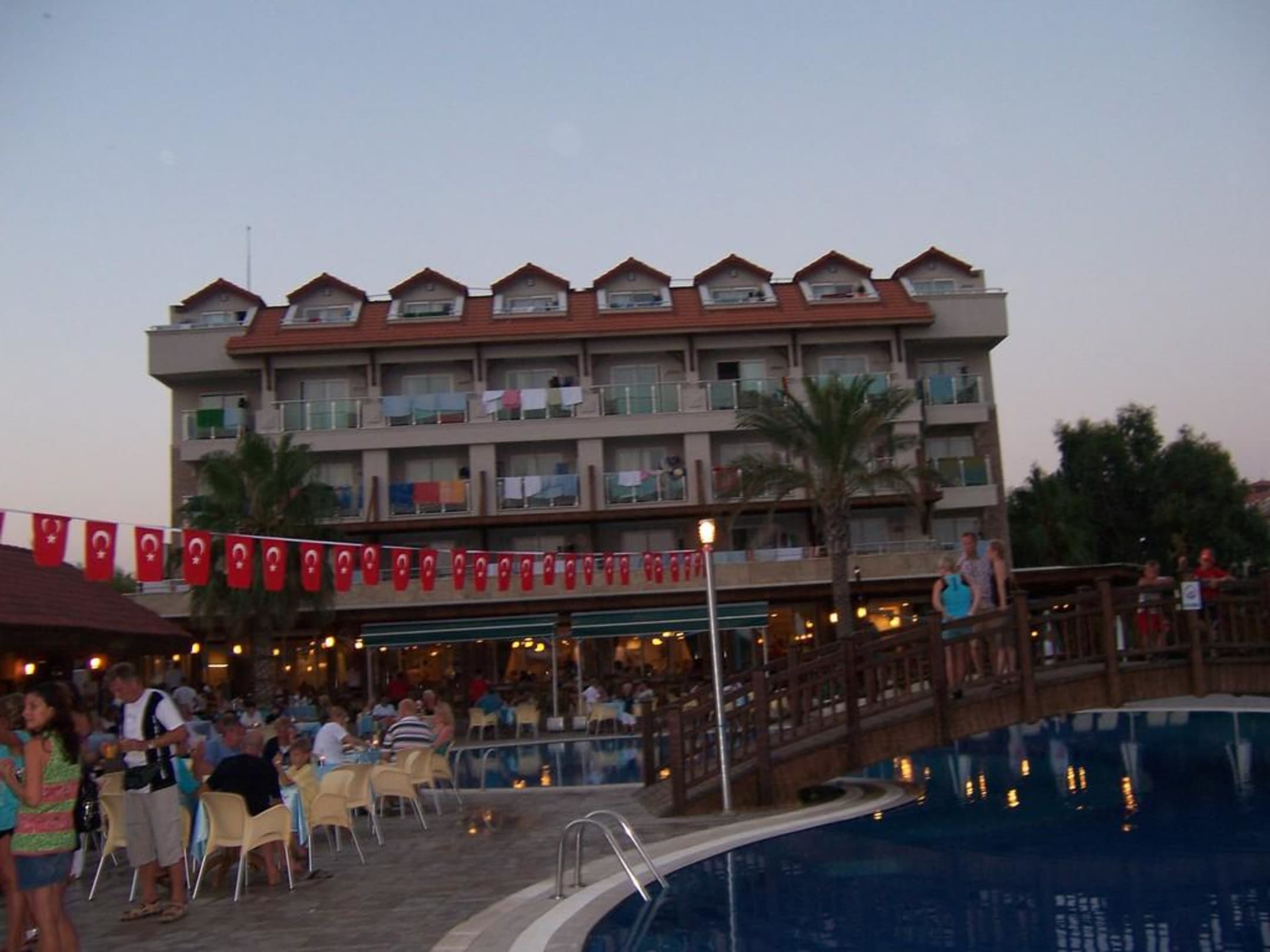 Blick vom Pool zum Gebäude "5"