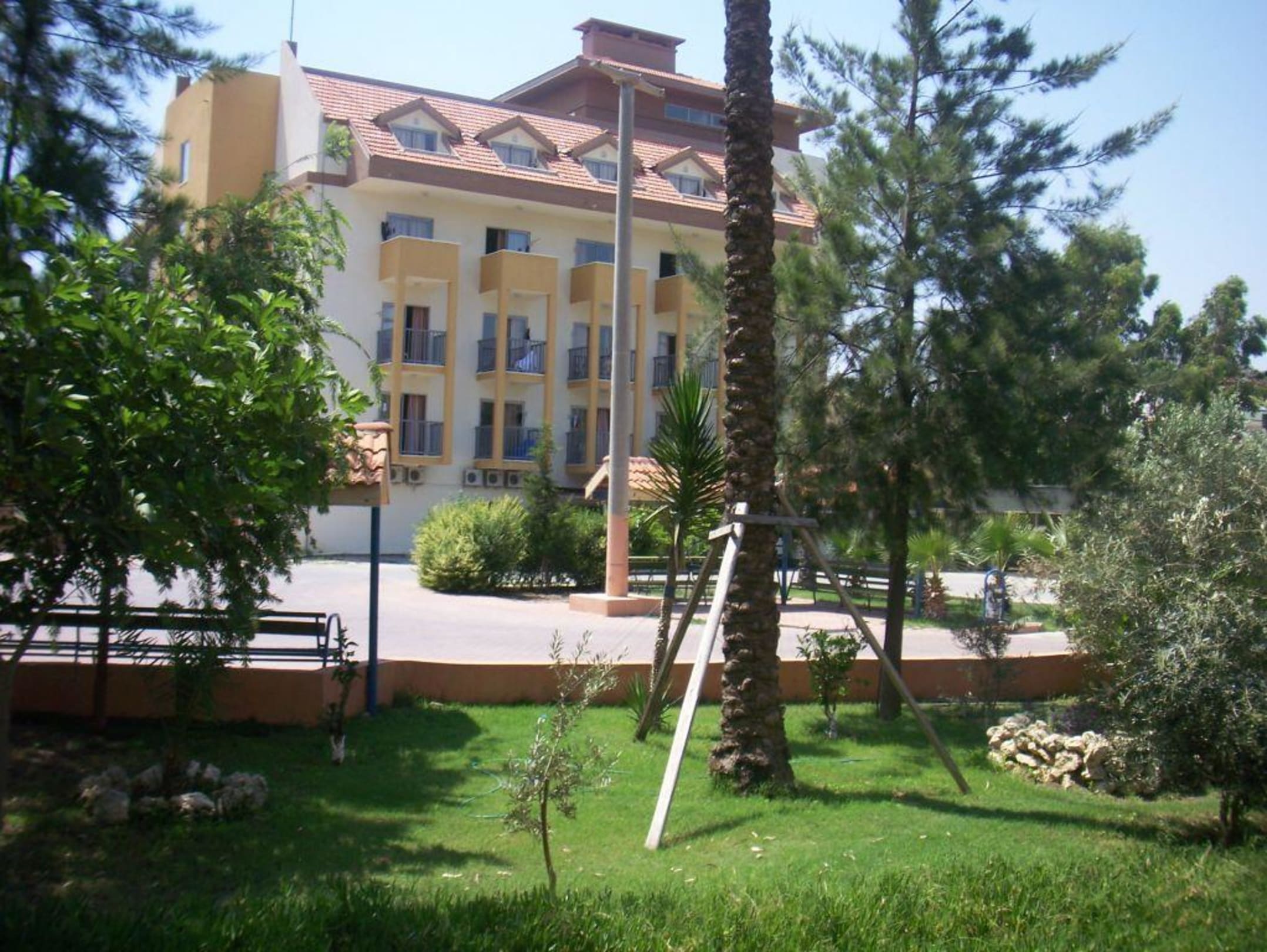 Eingangsbereich Hier sieht man ein Haus vom Schwesternhotel Seher Sun Beach und den Eingangsbereich von der Hotelanlage des Seher-Hotels.