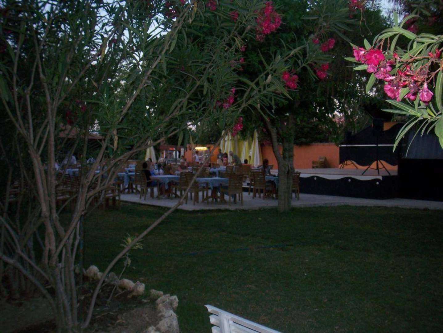 GartenanlageDer Hotelgarten mit Blick auf die Animationsbühne und die Bar wo abends immer gut was los war.
