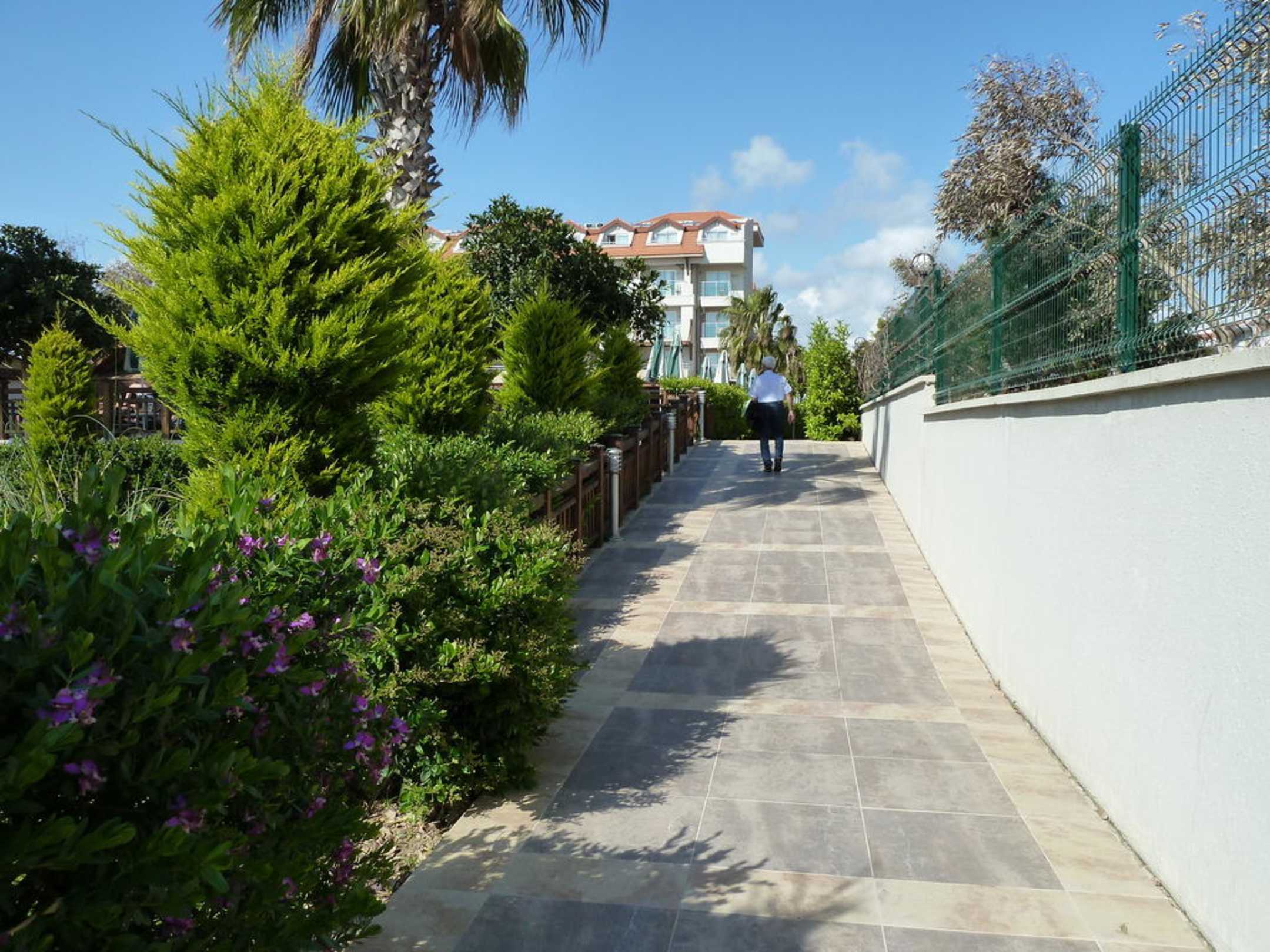 Der Weg führt neben dem Pool zum Hotel (vom Strand und der Promenade kommend)