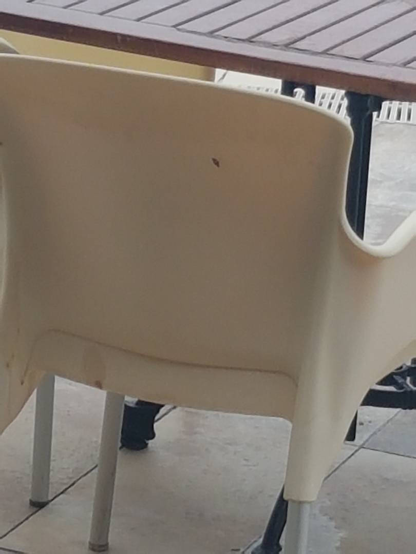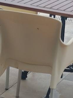 stühle am pool seit tagen mit eis und essenreste beschmiert