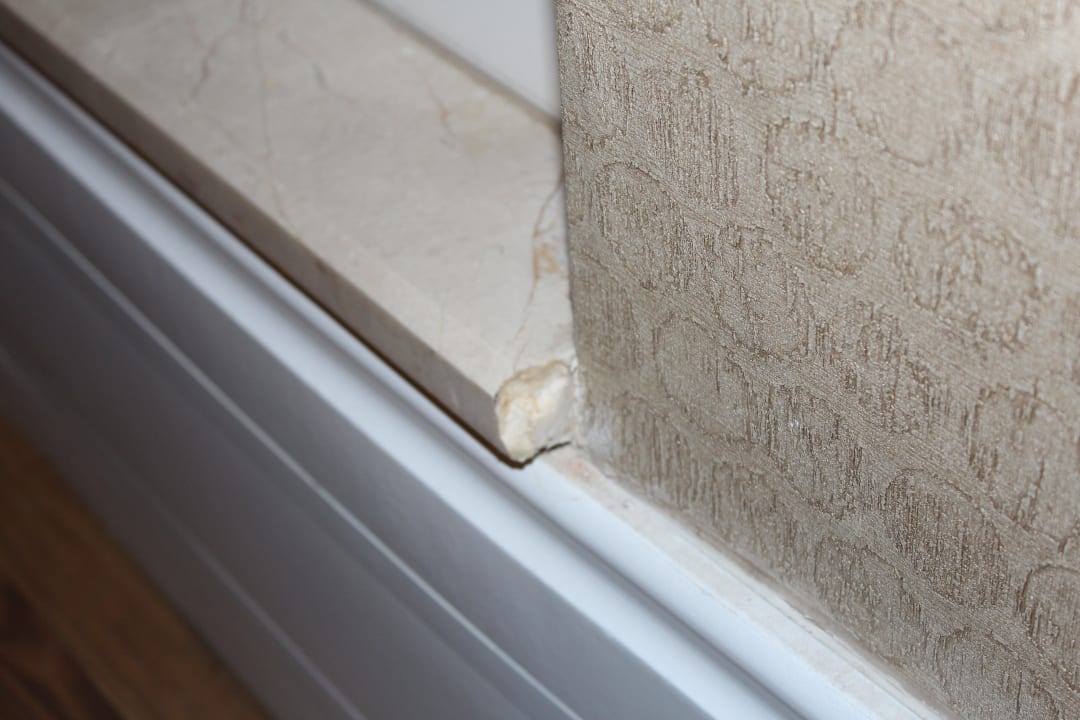 Defekte Fensterbank in der Lobby