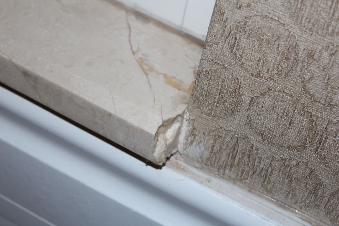 Defekte Fensterbank in der Lobby