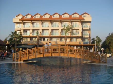 Hotelansicht von hinten, direkt am Pool