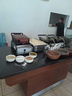 Waffelstation wie man an den Waffeleisen sehen kann sehr dreckig