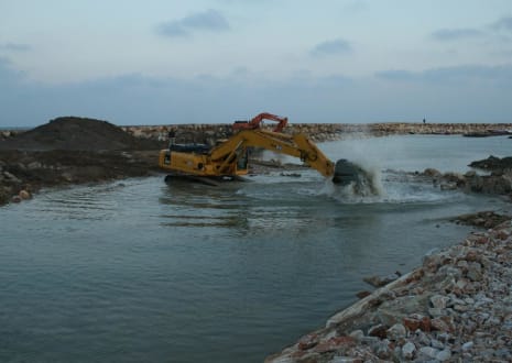 Baggerarbeiten in der Abenddämmerung