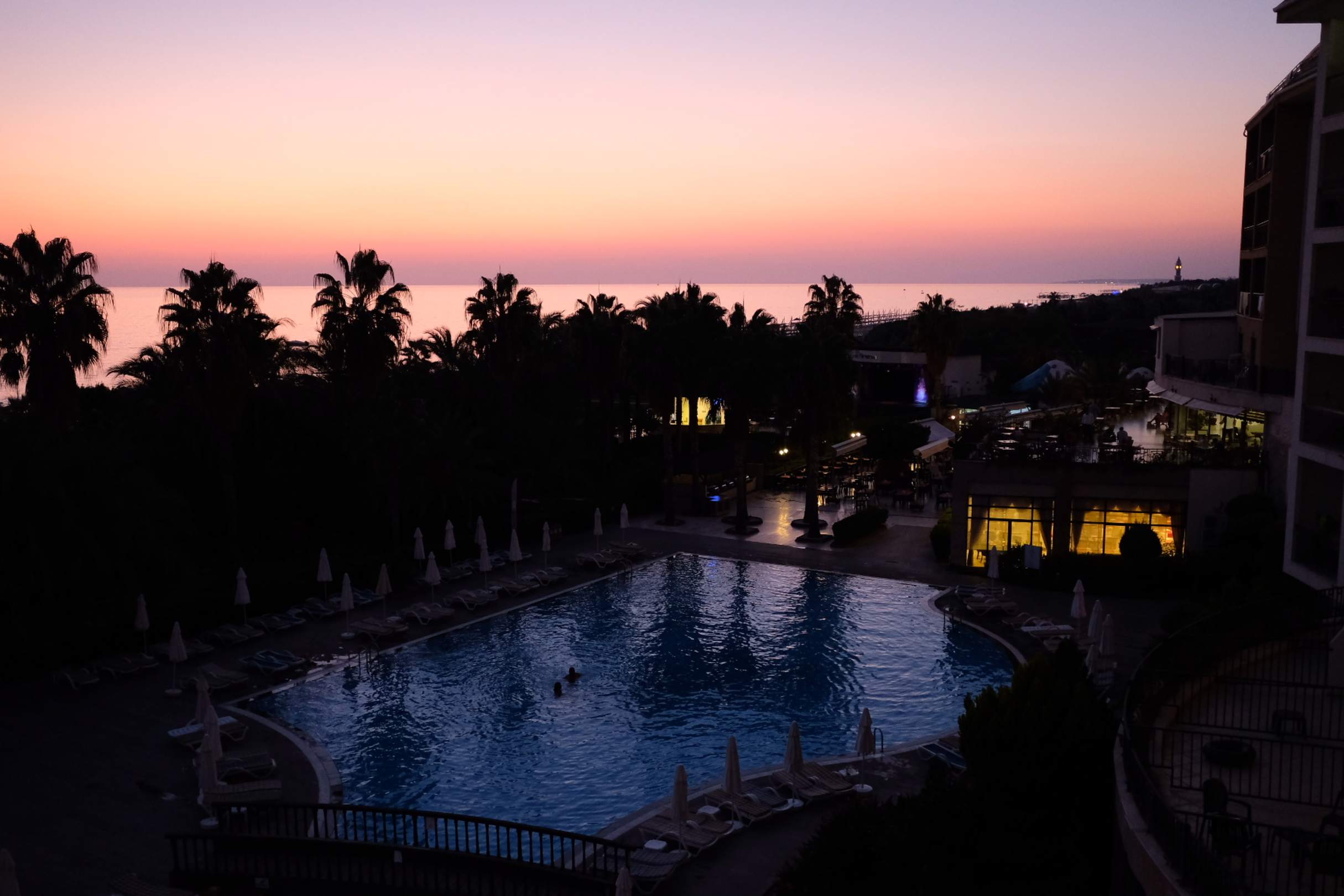 AusblickBlick auf Pool bei Dämmerung