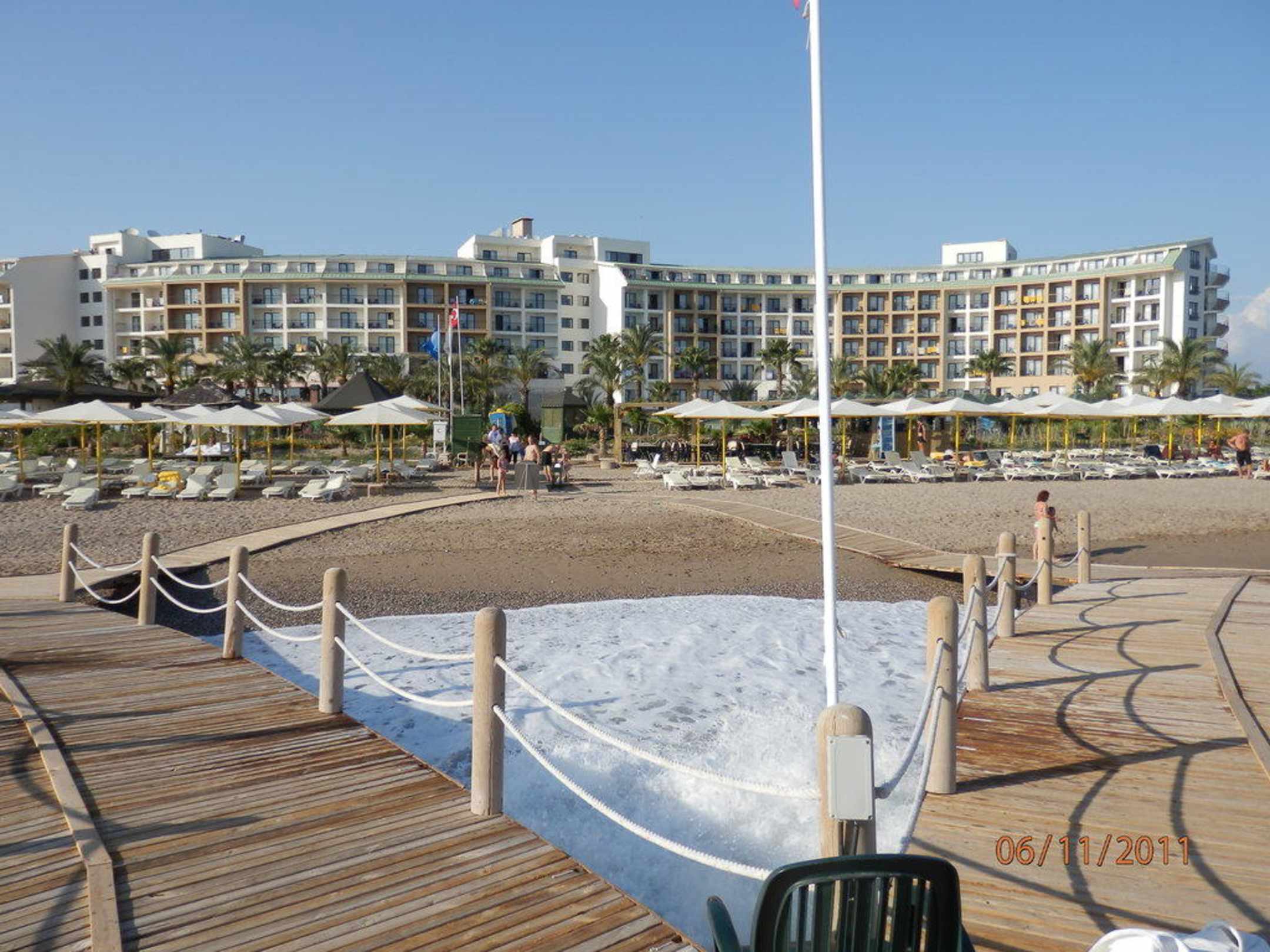 Widok z mola na plażę i hotel