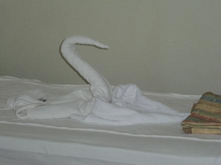 Auf dem Bett ein Schwan