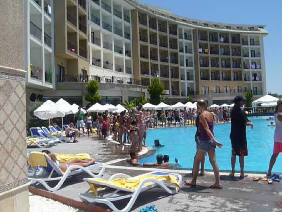 Pohled na hotel přes bazénU bazénu i pláže jsou bary, takže se nemusí chodit nijak daleko.