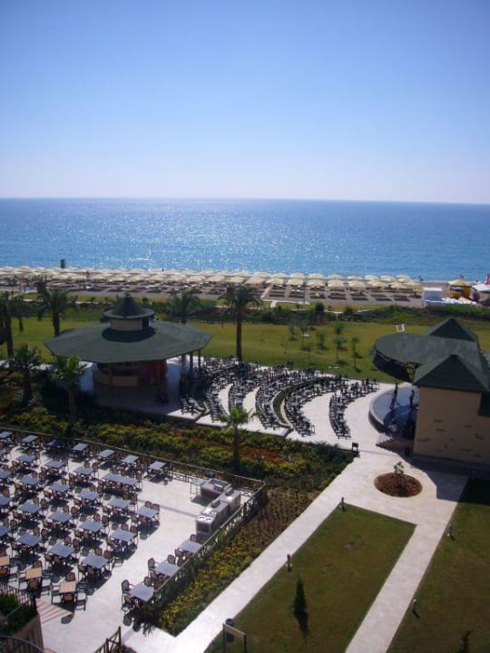 Blick auf das Meer und das Außenrestaurant
