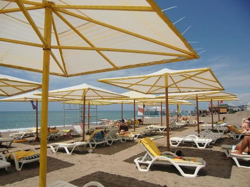 Lyra StrandDie Sonnenschirme waren mit Kabelbinder gebunden. Sehr professionell. Leider nicht.
