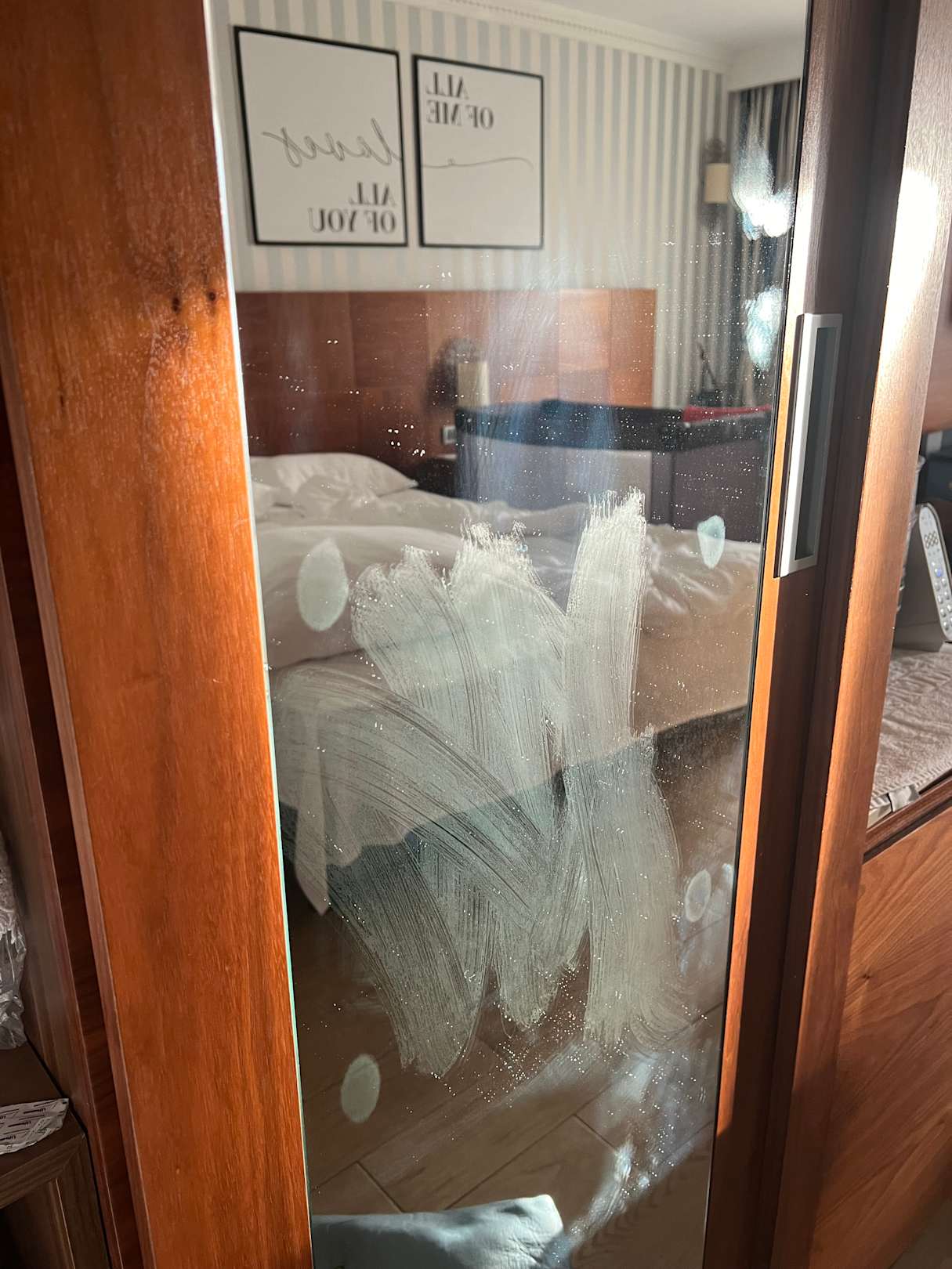 Die Spiegel im Zimmer. Die Fenster sehen auch so aus.