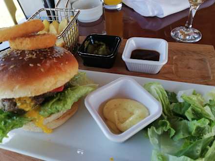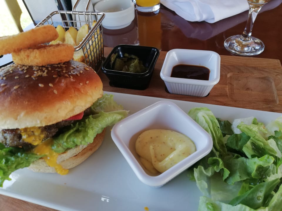 Burger am Mittag an der Strandbar..