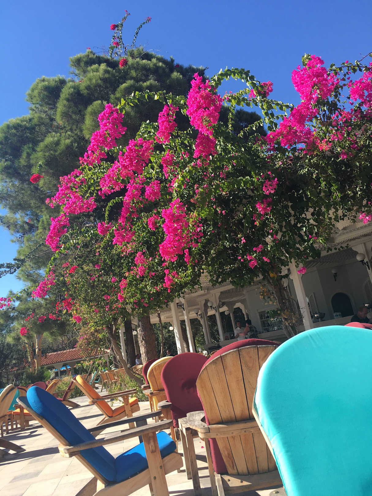 Blumen auf dem Dach der Poolbar
