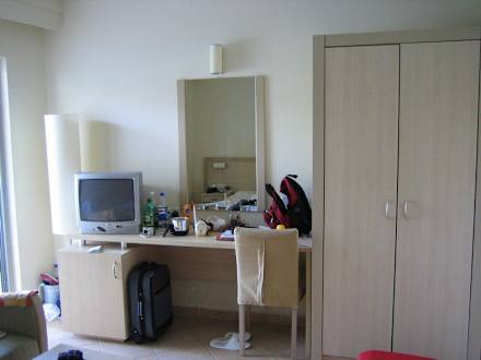 Familienzimmer großBlick auf den Fernsehbereich des großen Zimmers vom Familienzimmer Nr. 8510 im Sevillenbreich.