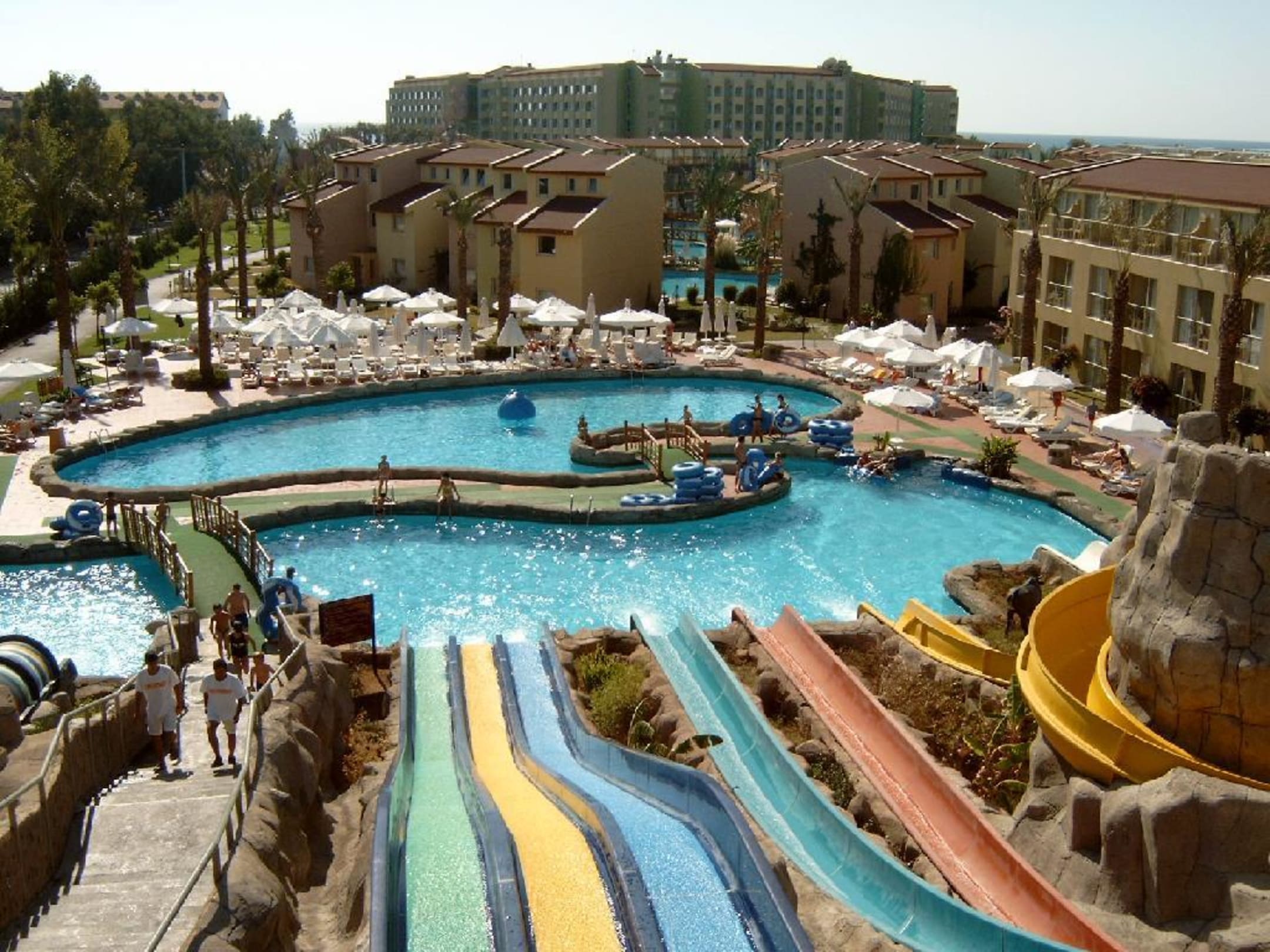 AquaparkAquapark mit Blick auf das Bungalowdorf und im Hintergrund das Haupthaus.