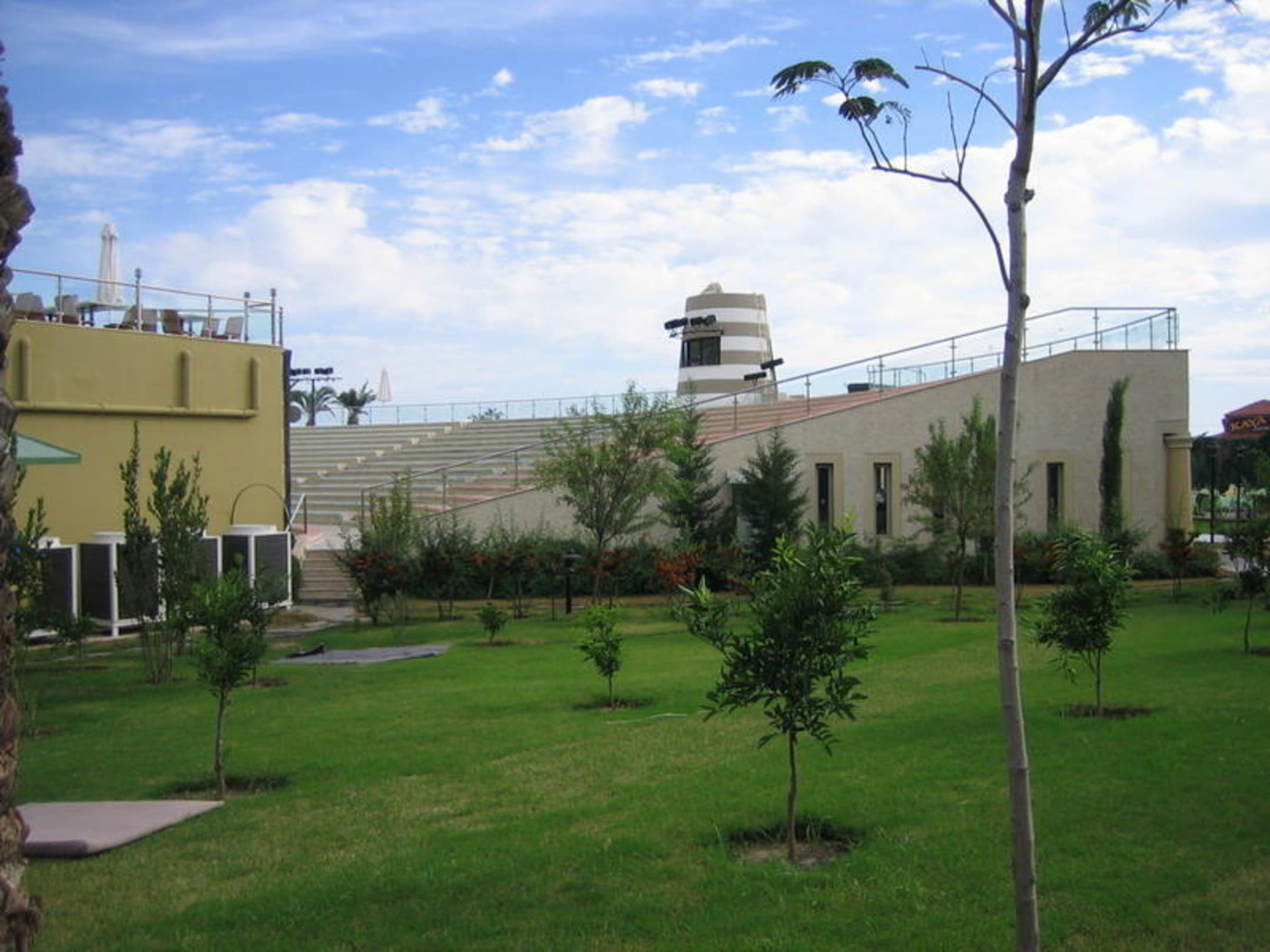 AbendanimationsbereichBlick auf den Abendanimationsbereich vom Weg aus der rechts in Richtung Strand gesehen neben dem Hotel verläuft.