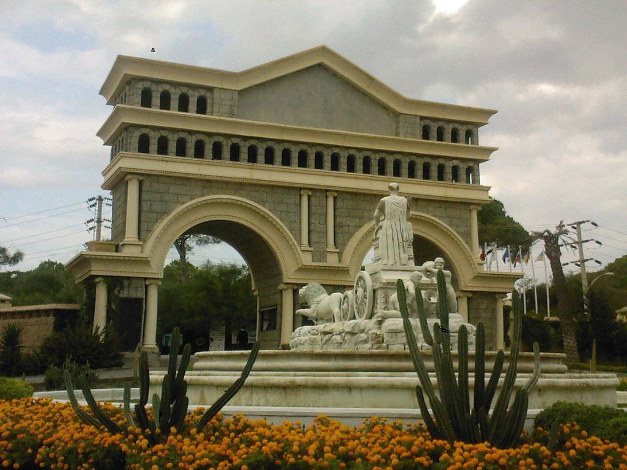 Арка украшает въезд на территорию отеля , а памятник великому императору Цезарю органично вписывается в миниплощадь перед отелем !
