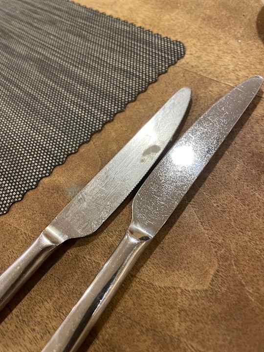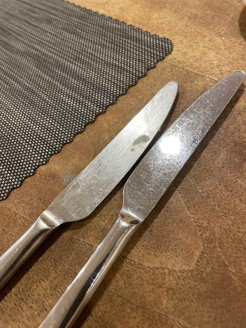 schmieriges Besteck im Gastronomiebereich. Jedes Besteck muss nach geputzt bzw neues angefordert werden! Da sind regelrecht noch Essensreste drann…