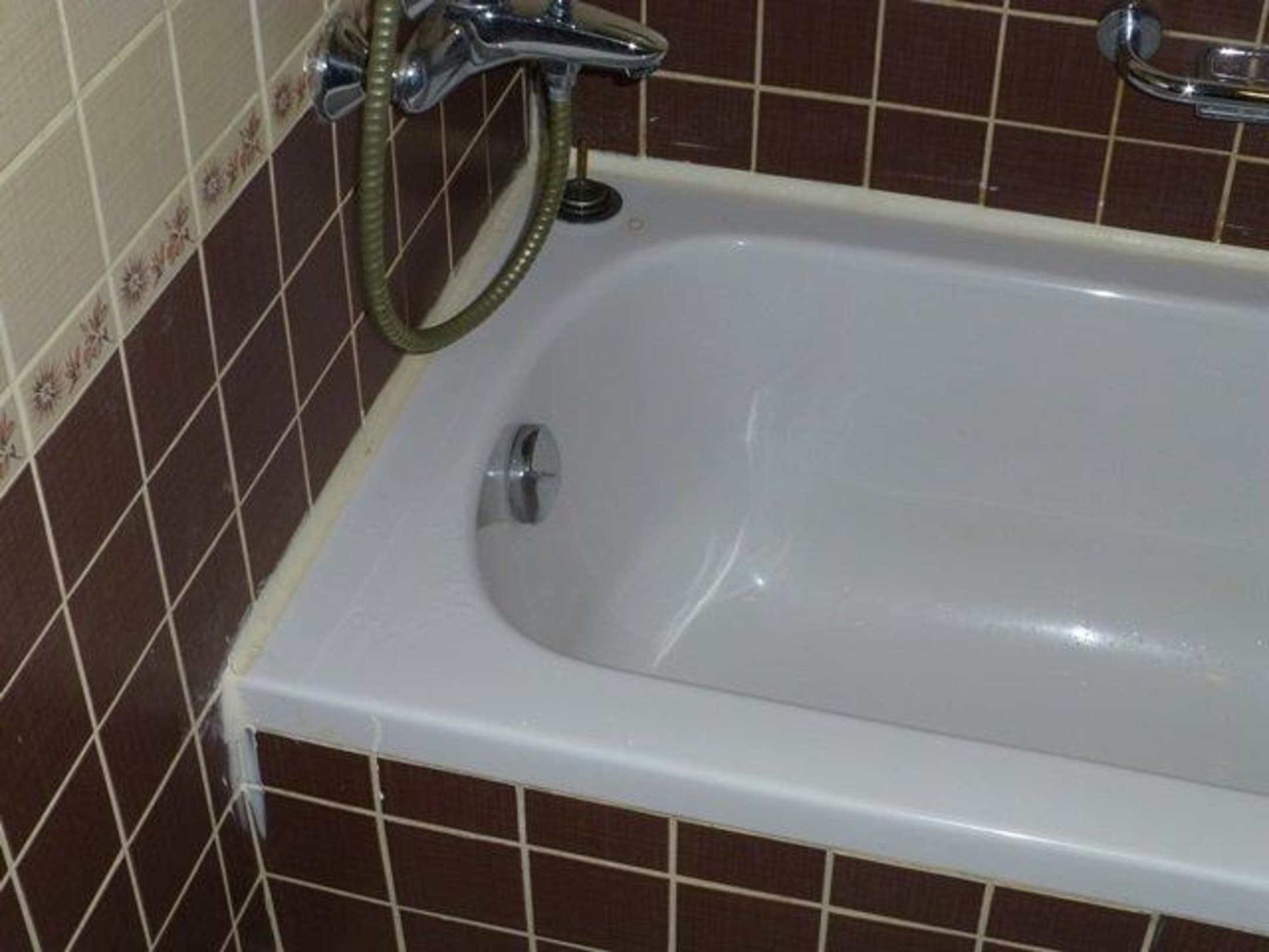 Badewanne mit Grob-Silikon abgedichtet