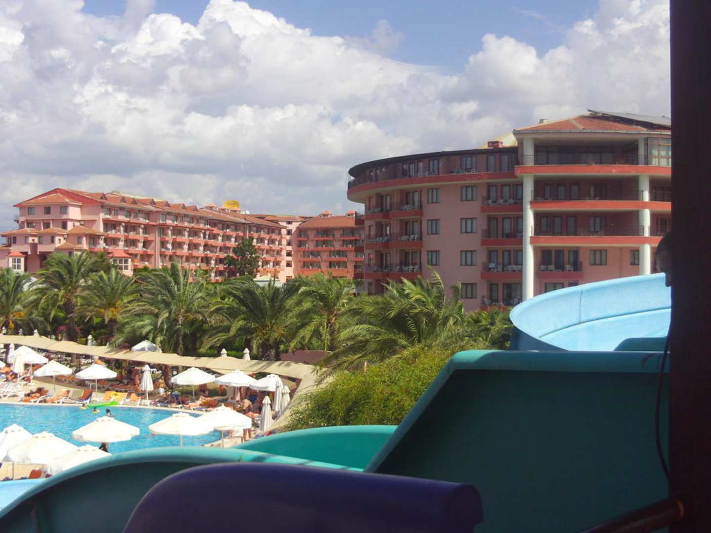 Blick von der Rutsche zum Hotel