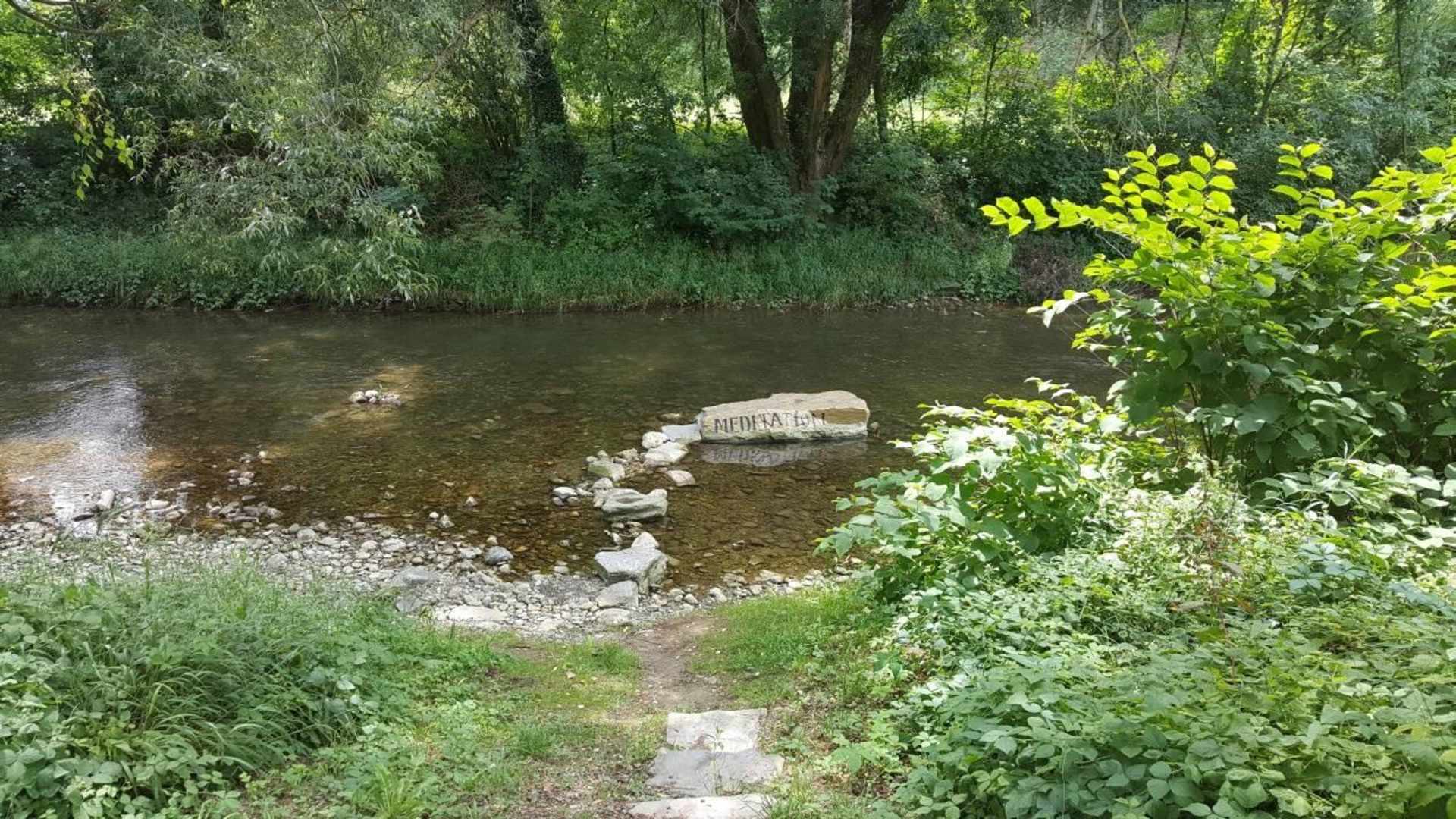 Goldener Meditationsstein im Bach