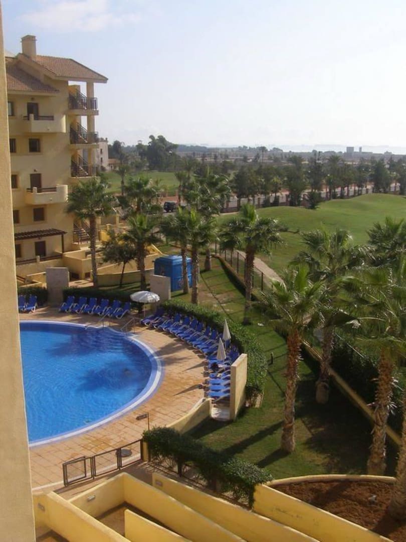 Vista parcial de la piscina y el campo de golf