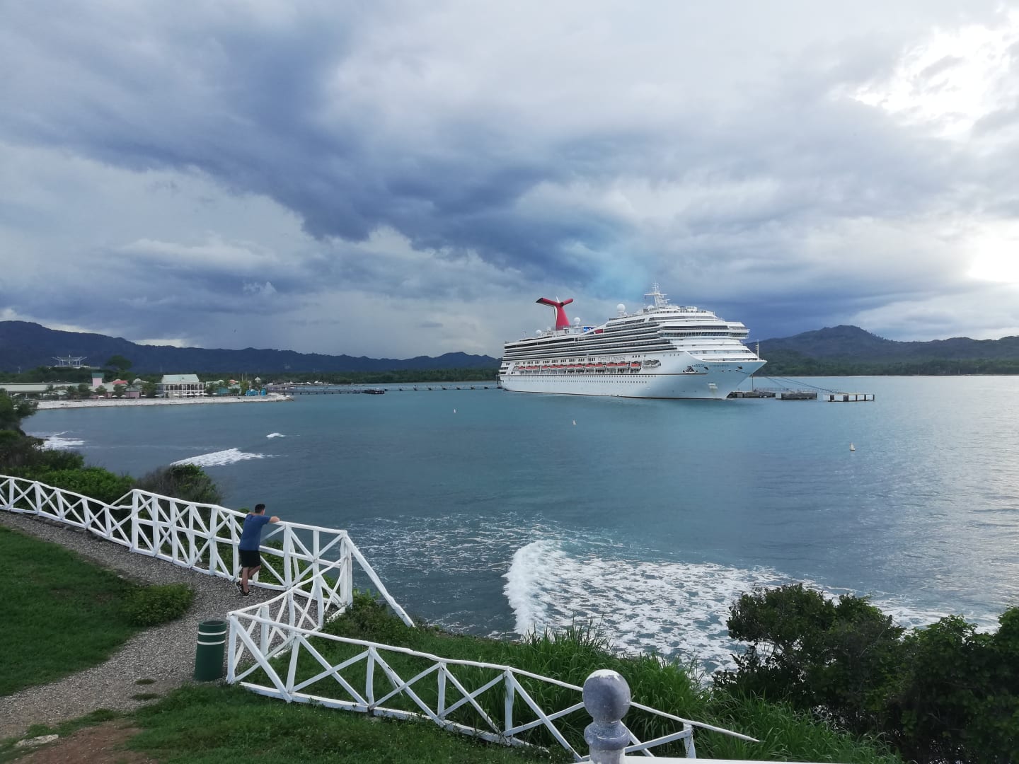 Aussicht auf den Hafen wo Kreuzfahrtschiffe manchmal anlegen. Gäste vom Schiff können aber nicht ins Hotel und man wird auch nicht davon gestört.