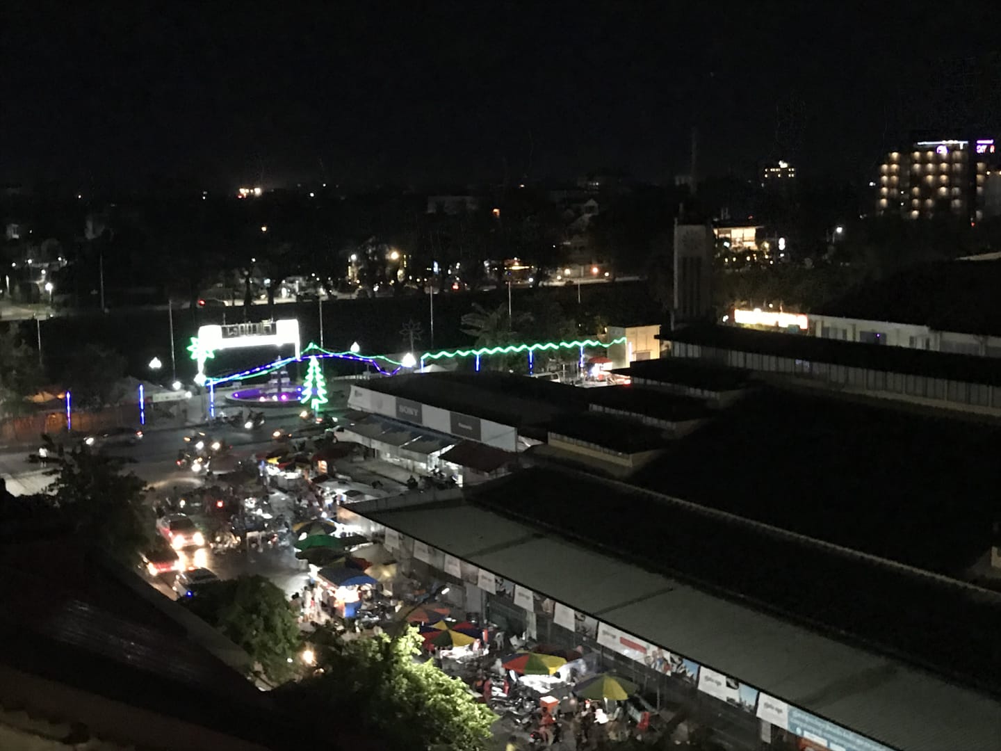 Blick nachts von der Dachterrasse
