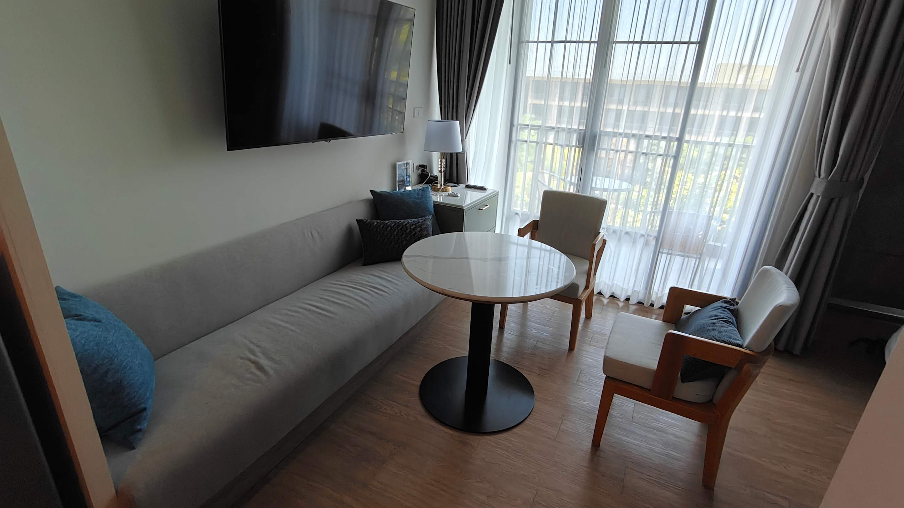 Sitzecke mit Balkon. Türen sind auch mit Fliegengitter ausgestattet👍🏻