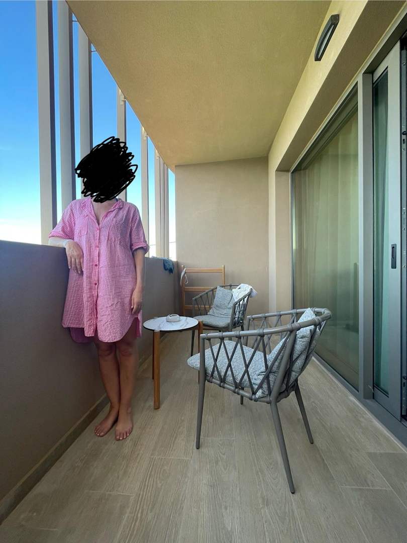 da sieht man die Höhe der Betonmauer, Balkon