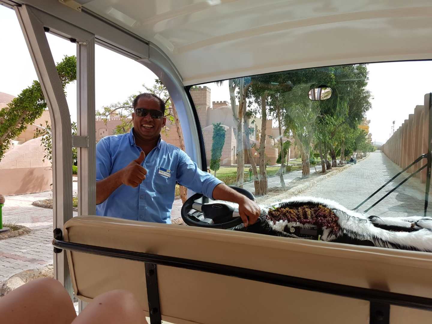 Sonstigesimmer gut gelaunt und super freundlich: Achmed, der einen mit dem Elektroshuttle durch die Anlage fährt.