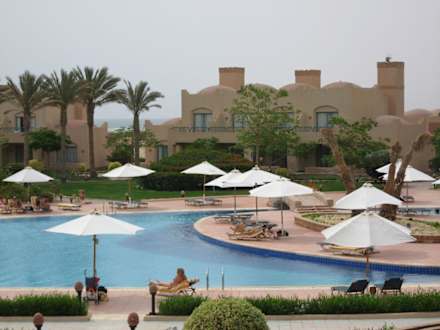 Blick vom Hauptgebäude aud den Hauptpool