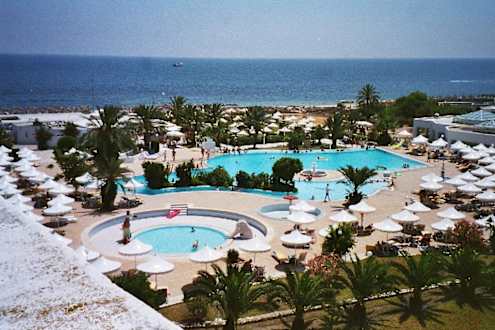 Poolanlage mit Strand und Meer
