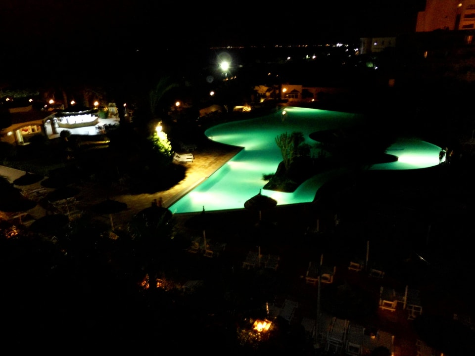 Blick aus dem Zimmer auf die Poolanlage