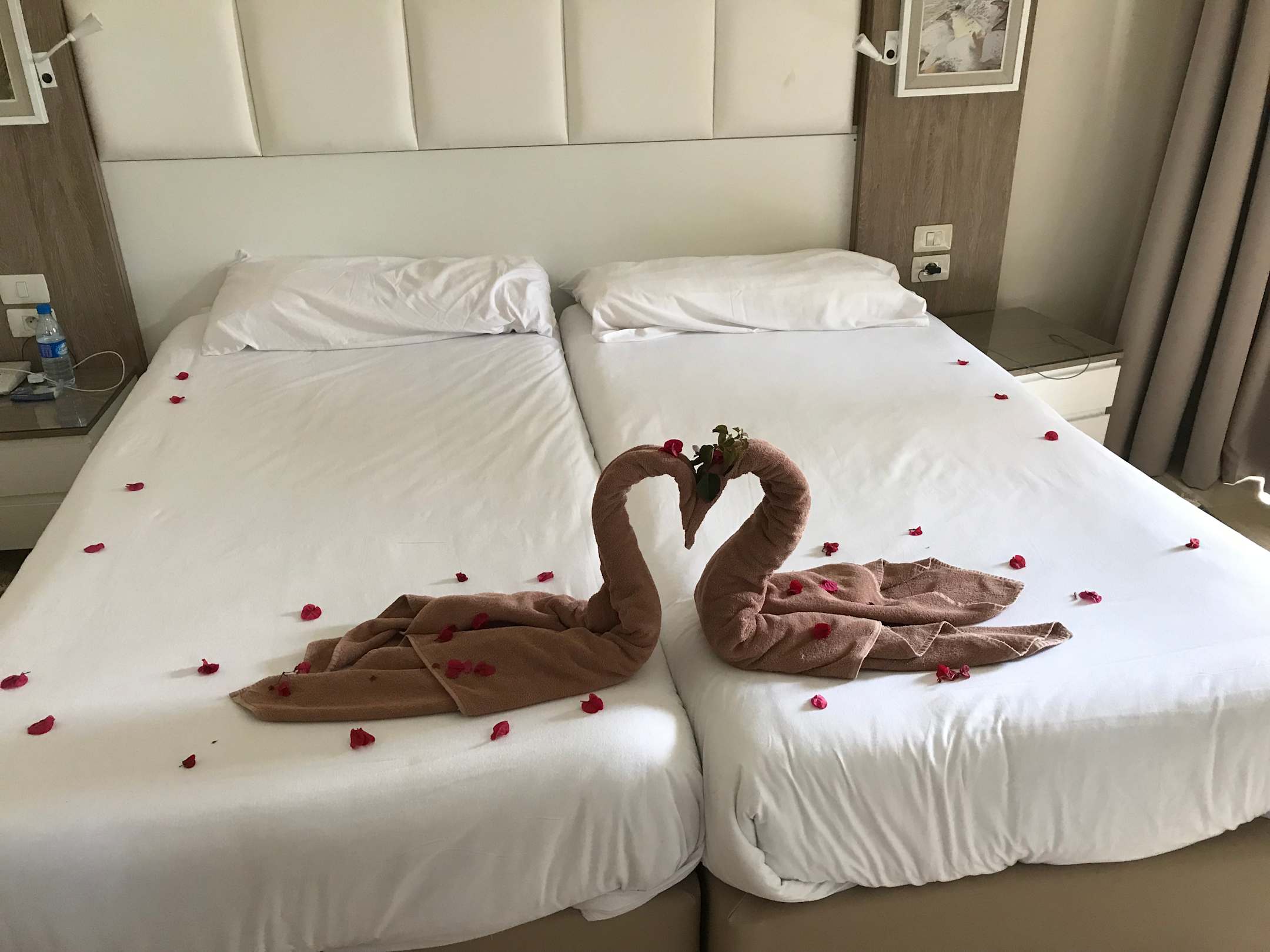 Vom Zimmermädchen dekoriertes Bett