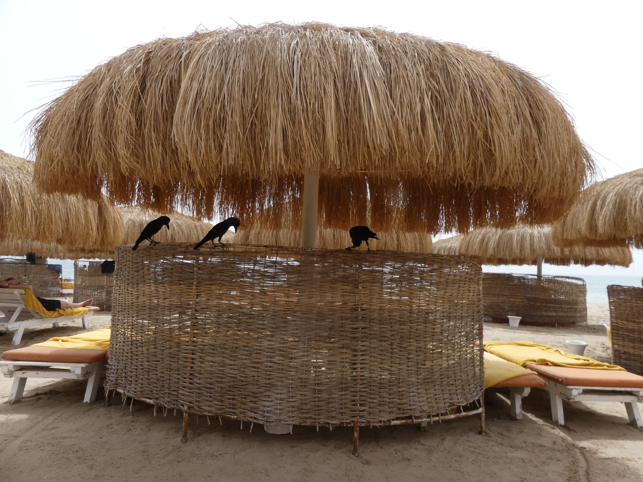 So viele Liegen unter einem Schirm???
