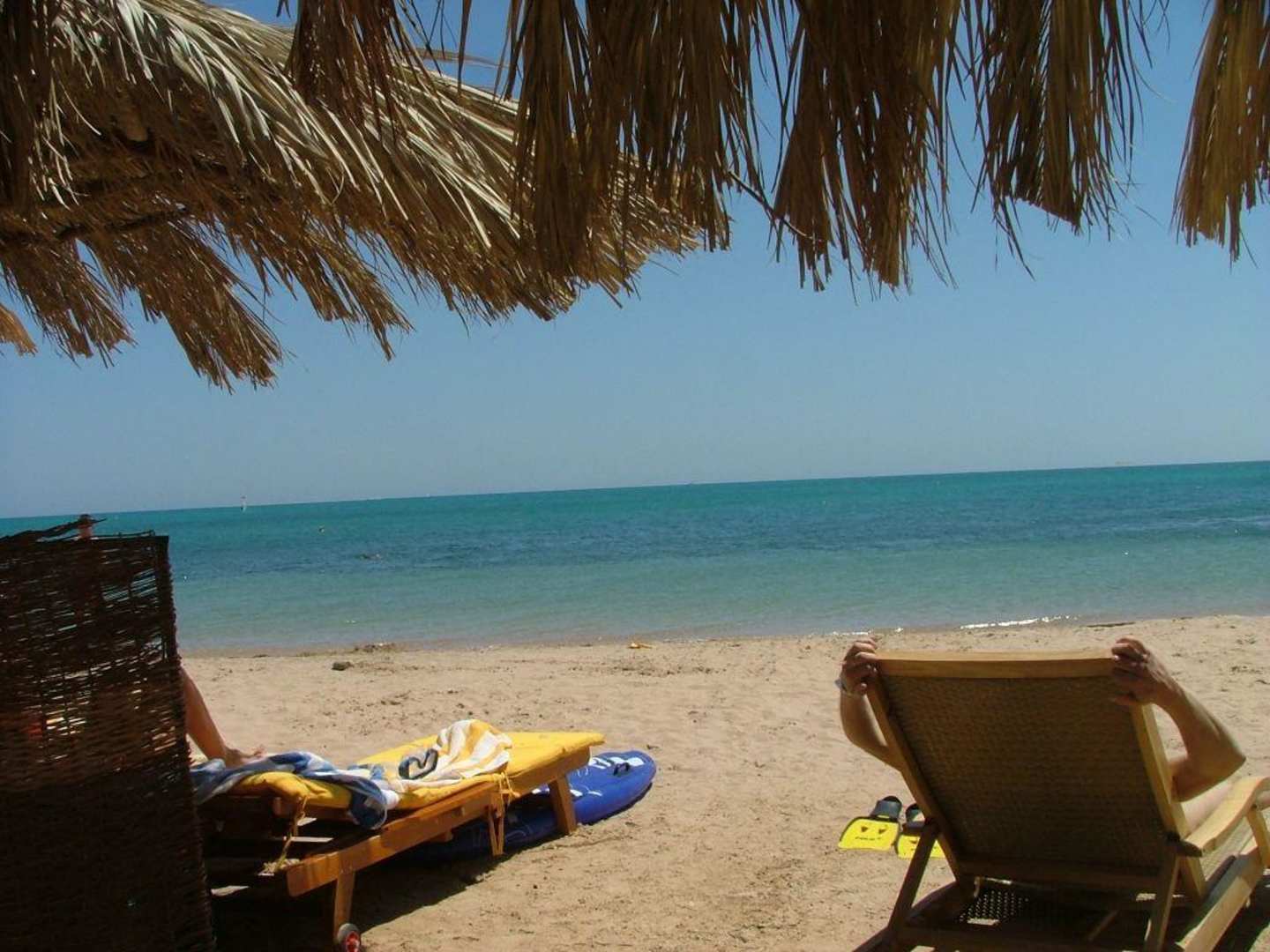 Typischer Ausblick vom Strand zum Roten Meeraber bitte beachten: teilweise weht ein sehr starker, für uns ungewohnter Wind.