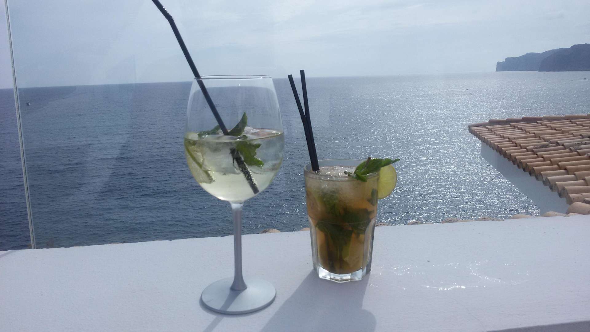 Hugo und Mojito mit Blick von der Bluebar