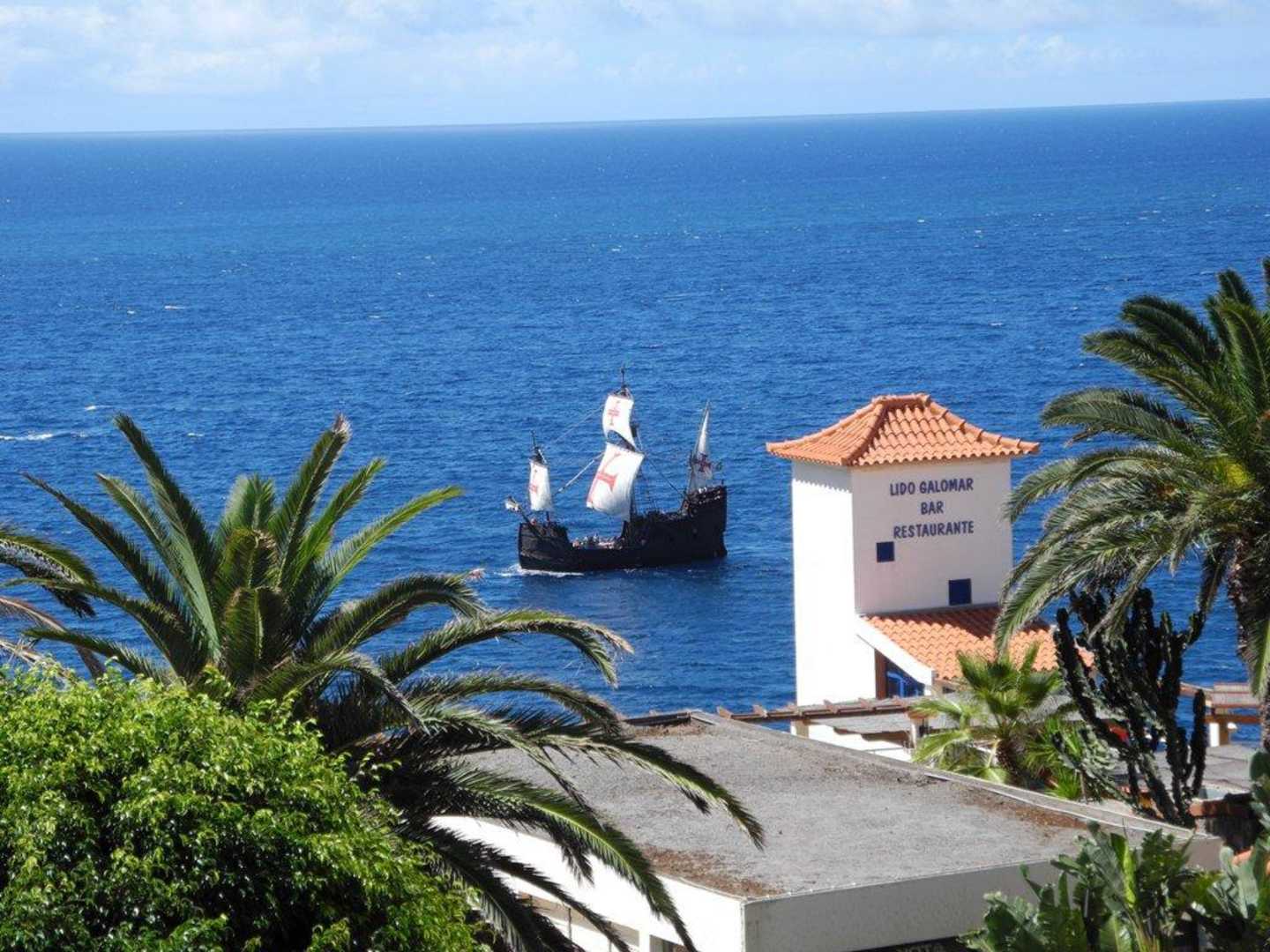 Die Santa Maria zieht vor der Galo Anlage vorbei