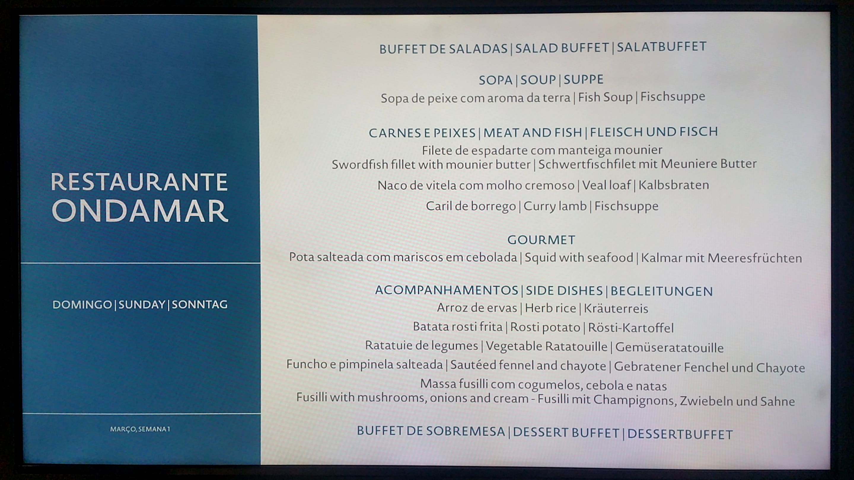Speiseplan für Sonntag