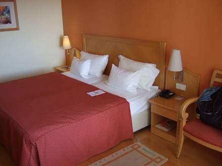 Blick von der Hotelterrasse über den Pool hinweg