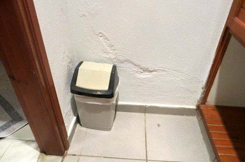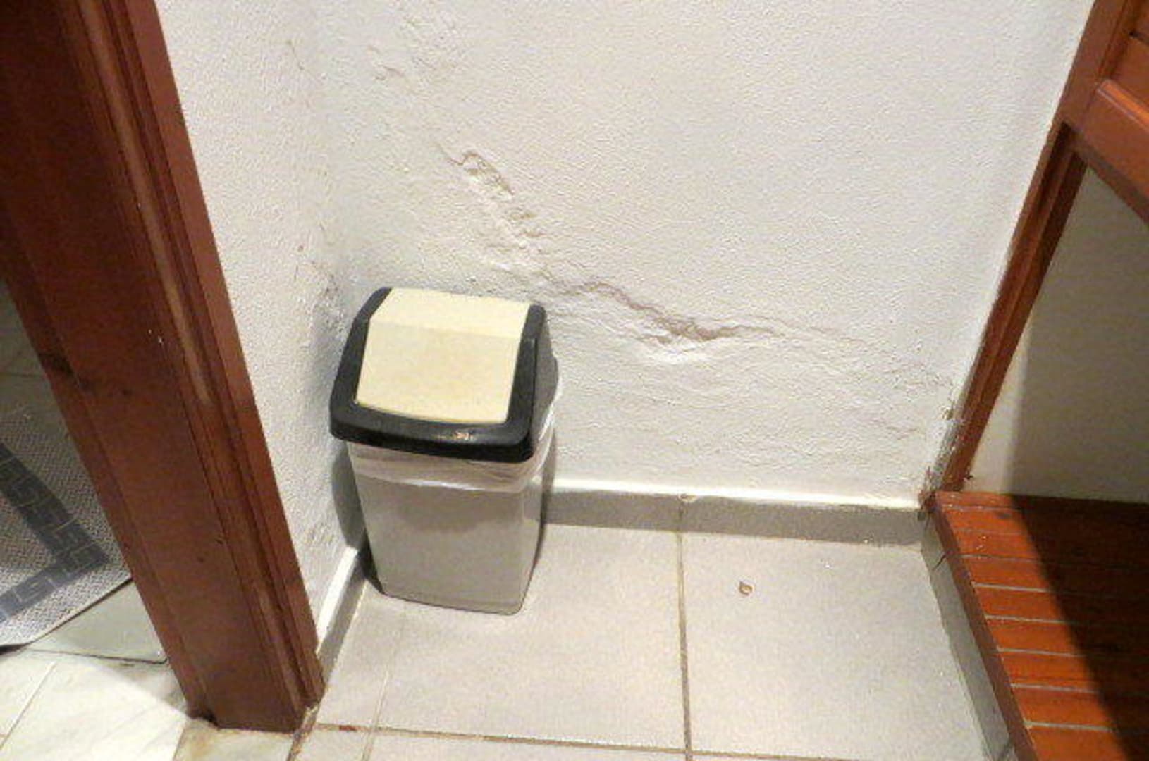 Wand im Bungalow neben Bad und der Kofferablage