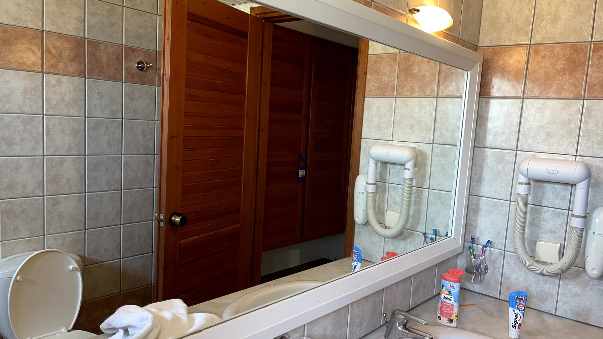 Abend sind die Lichter über dem Spiegel so dunkel, dass man sich selbst kaum erkennt. Optik ekelhaft.
