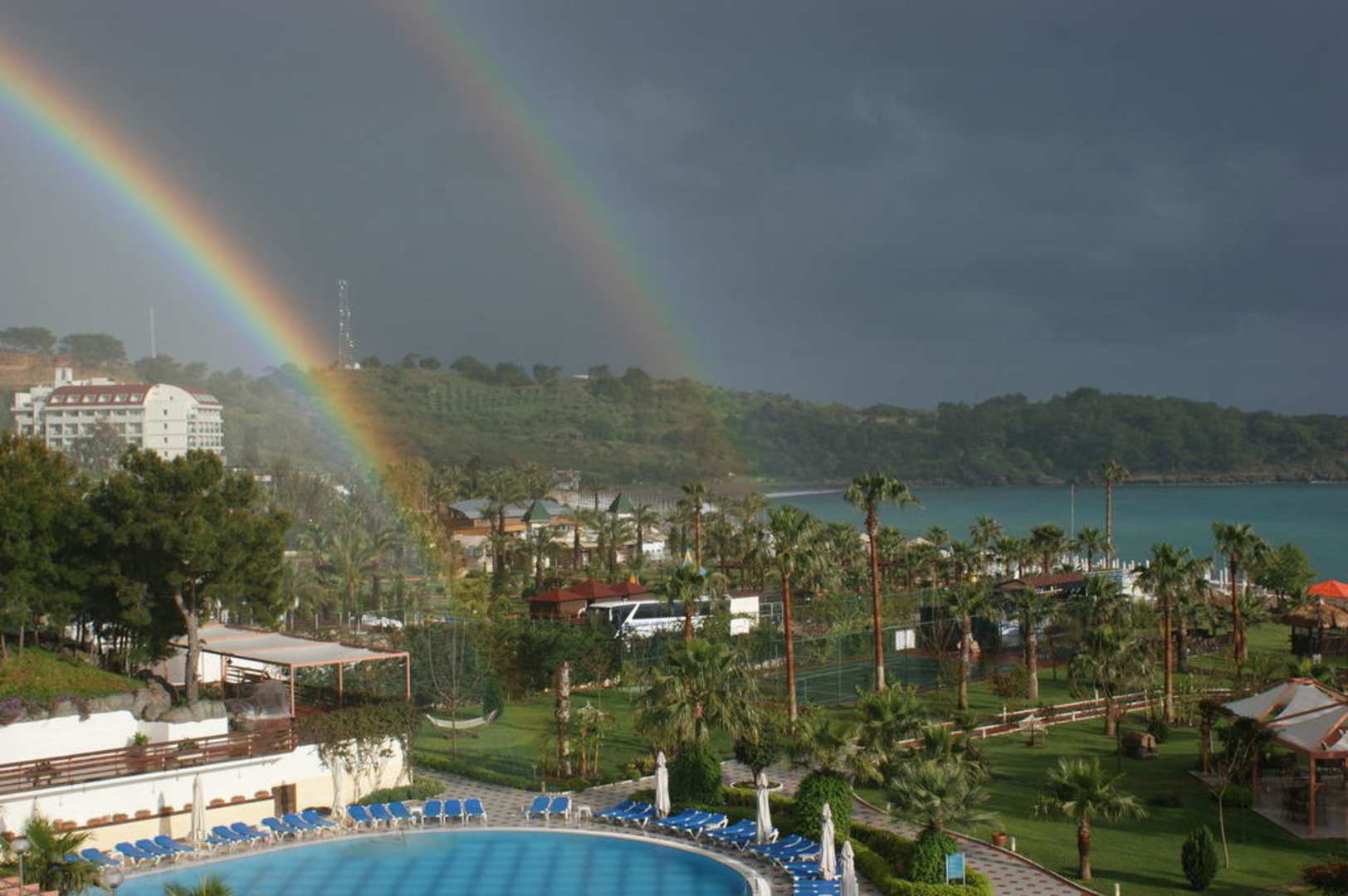 Ausblick über die Bucht, der Regen hat uns wenigstens Regenbogen beschert.