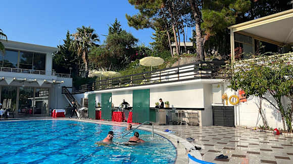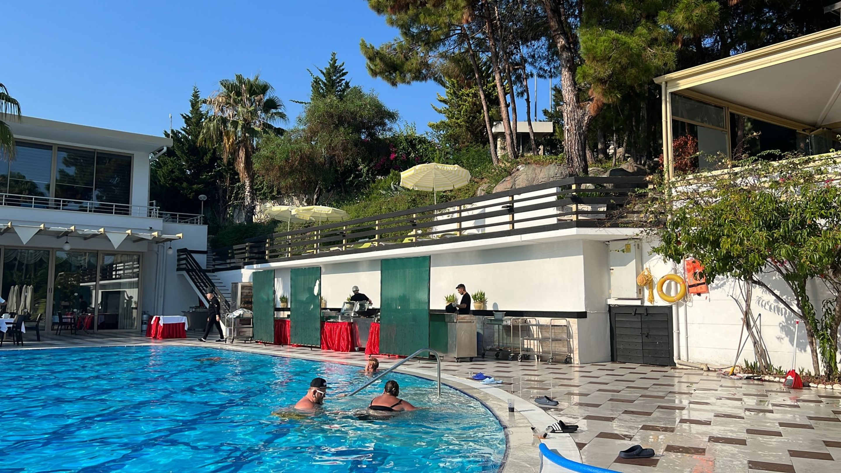 Das Essen wird direkt am Pool vorbereitet…